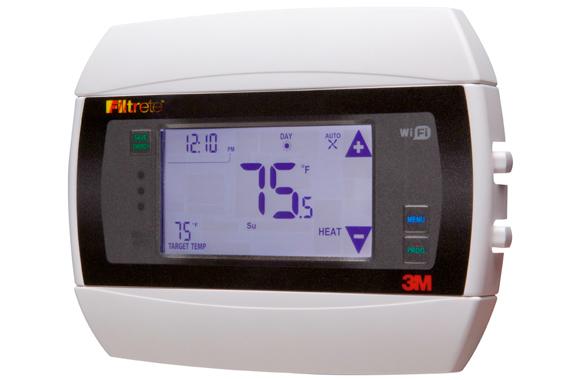 In addition to indoor temperature, the Prestige’s graphical user interface can display outdoor conditions and humidity with an add-on sensor. An onscreen wizard interviews you about your usage based on simple questions, and then sets a program accordingly. A portable controller lets you adjust settings from any room in the house.